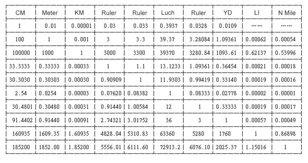 Traditional length units:China's traditional length units are Li, Zhang, Ruler, Inch, etc.