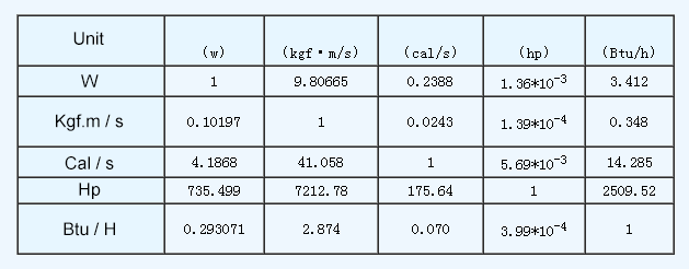 Interchange between online W, kW, HP, PS, kg·m/s, kcal/s, Btu/s, ft·lb/s, J/s, N·m/s can be realized.