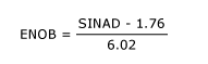Effective Number of Bits (ENOB): The test indicator (bit) of the analog-to-digital converter (ADC) associated with the input frequency fIN. As fIN increases, the overall noise (especially the distortion component) will increase, thus reducing ENOB and SINAD performance. See also: Signal to Noise + Distortion Ratio (SINAD). The relationship between ENOB and SINAD is: