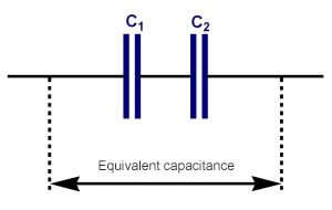 3. reciprocal of total capacitance = reciprocal sum of series capacitance. 1 / CT = 1 / C1 +